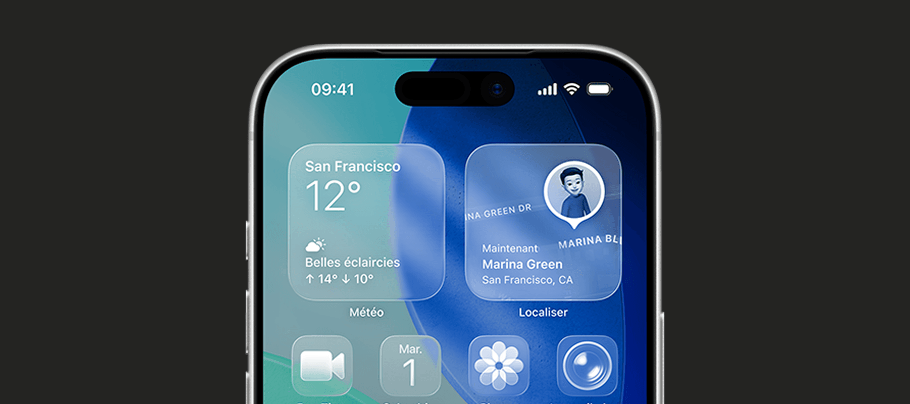Cette fois, l’inspiration vient de visionOS (la première caméra 3D conçue par Apple) : fini les blocs opaques, place à Liquid Glass, un langage visuel qui transforme chaque bouton, barre ou widget en surface translucide. Ces éléments ne sont plus figés : ils se contractent, se dilatent et laissent filtrer ce qu’il y a derrière, comme si l’interface devenait une matière vivante.