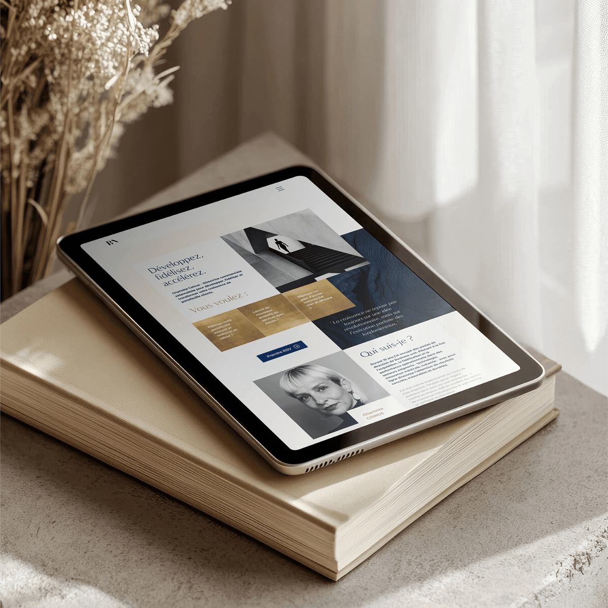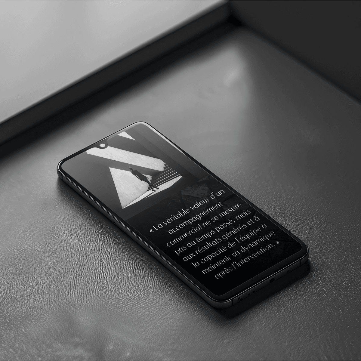 L’ensemble crée une atmosphère solide, précise et élégante, totalement alignée avec son positionnement.