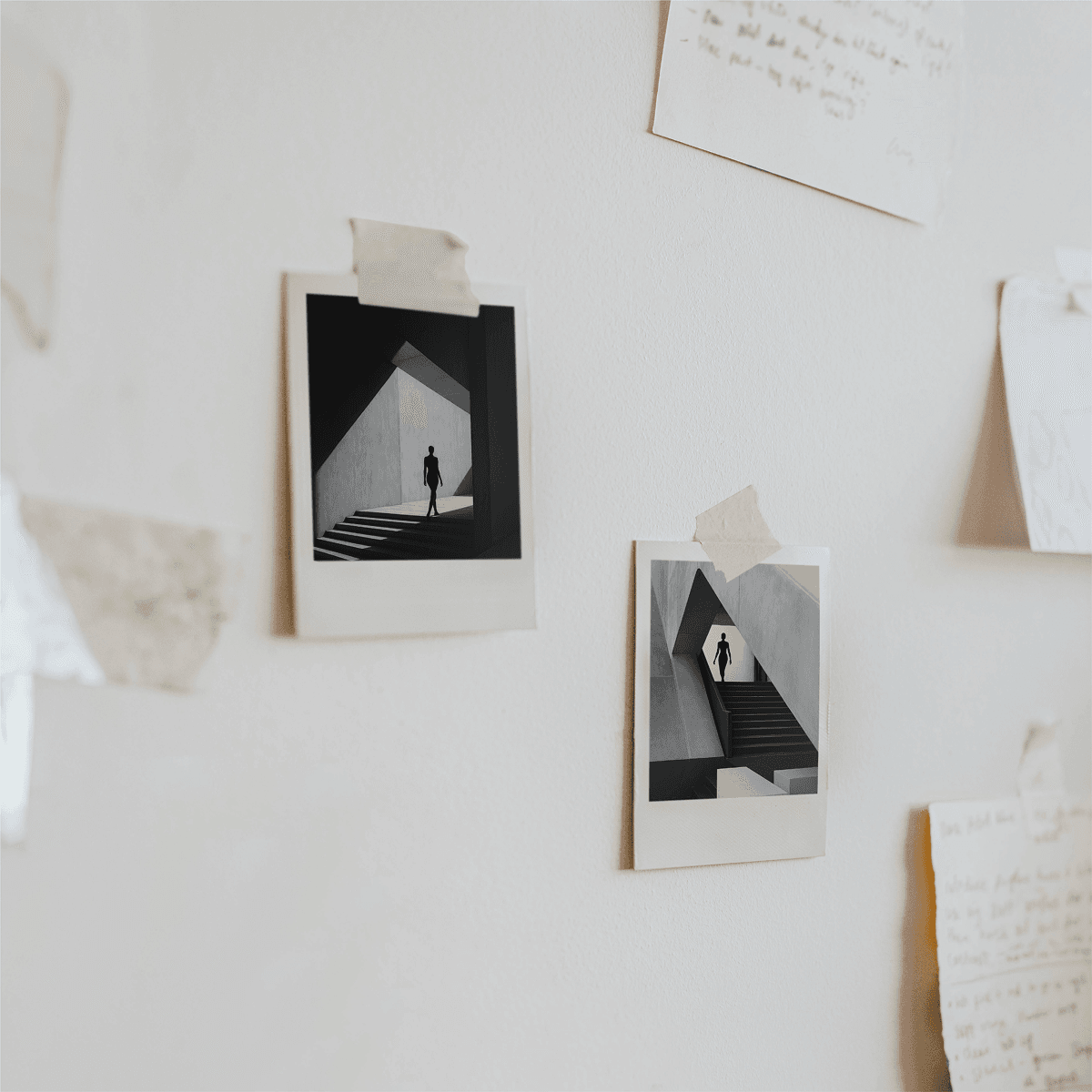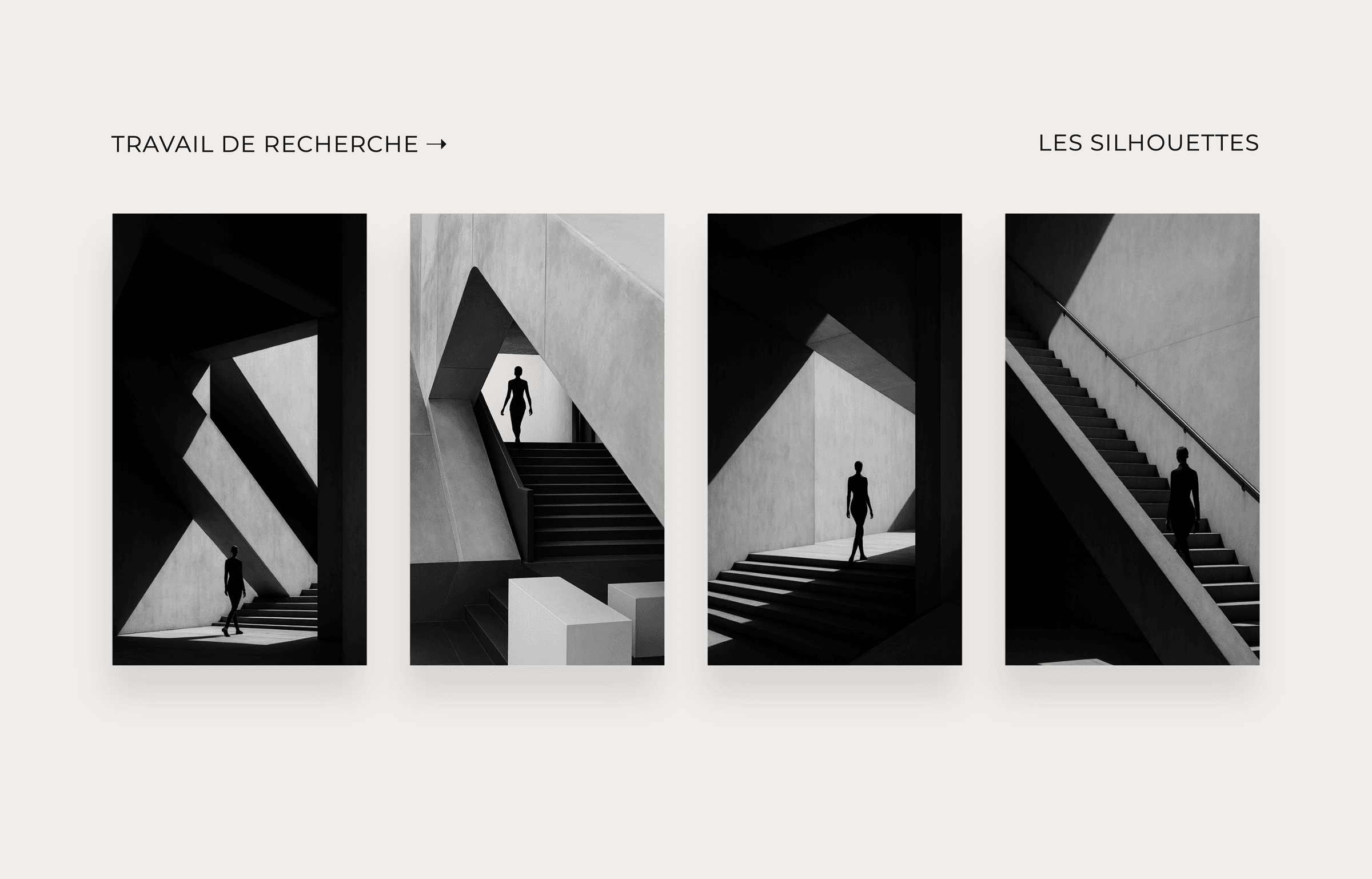 - Les matières minérales : béton, lignes architecturales, clair-obscur.