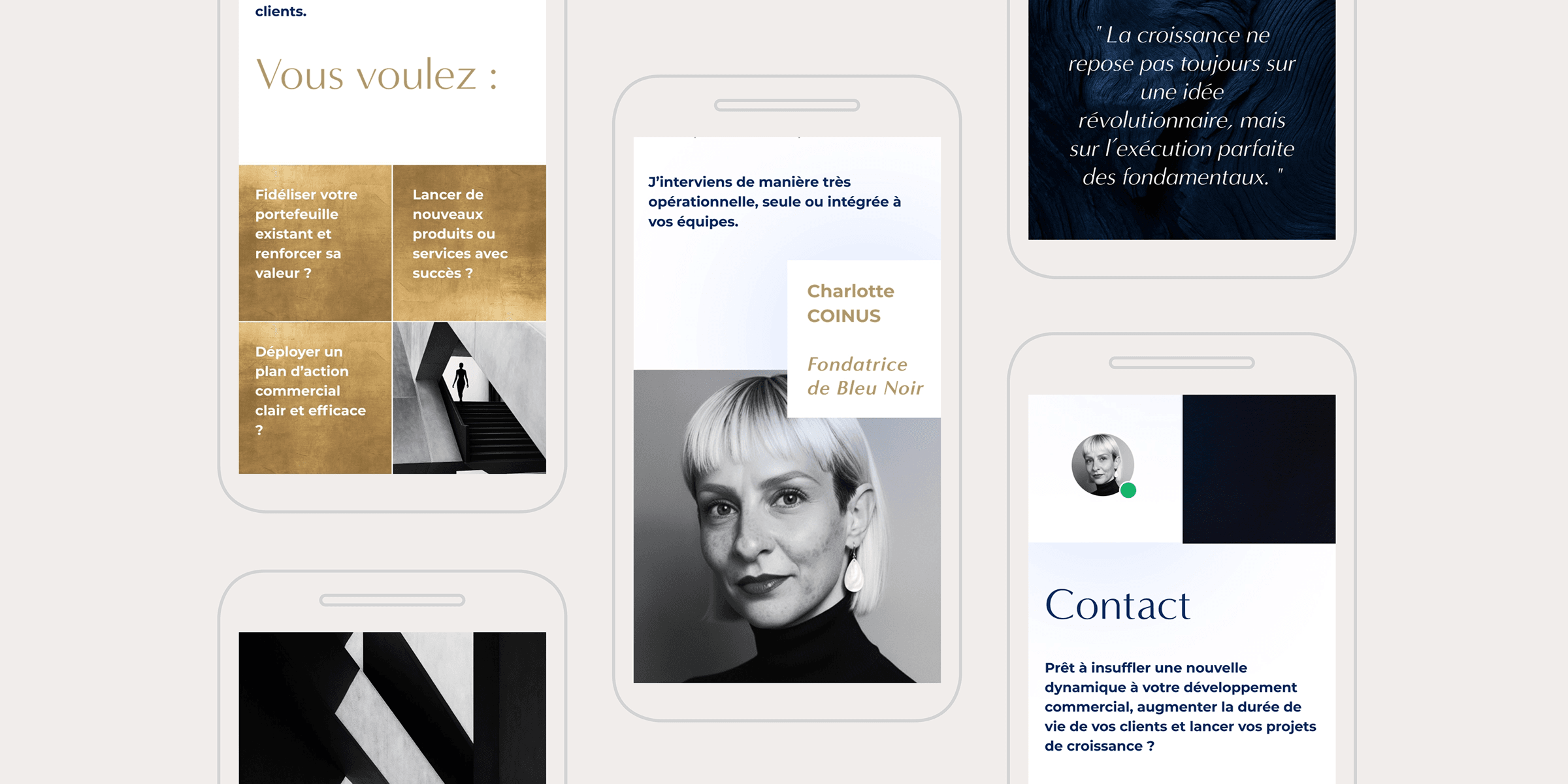 Le site combine rythme, clarté, hiérarchie et un travail visuel immersif qui installe immédiatement l’univers Bleu Noir.